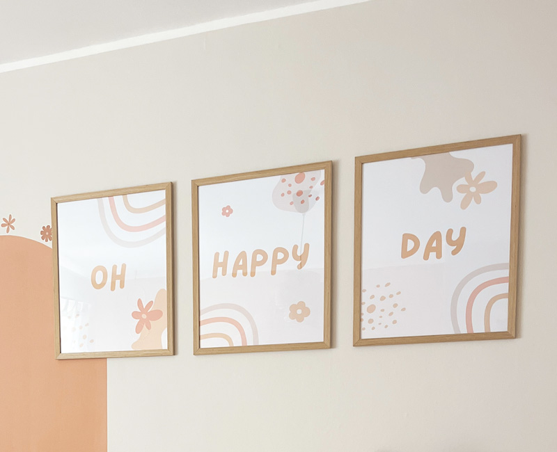 Du kannst die Druckdatei der Poster hier kostenlos runterladen und in einem CopyShop deiner Nähe ausdrucken lassen. Die passenden Bilderrahmen auf dem Bild sind von Jysk.
