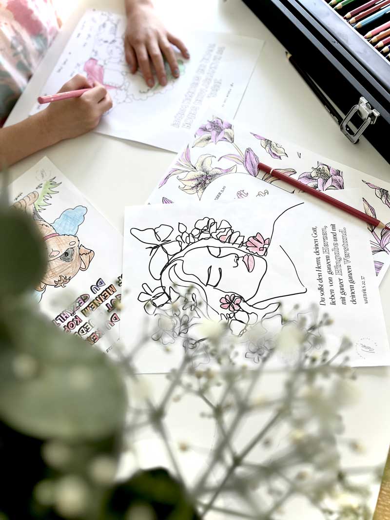 Sinne gemeinsam mit deinen Kindern auf farbenfrohe Weise über Gottes Wort nach. Die Ausmalbilder bieten eine schöne Möglichkeit Bibelverse zu verinnerlichen und über Gott ins Gespräch zu kommen. Es sind Motive für Erwachsene & Kinder dabei.